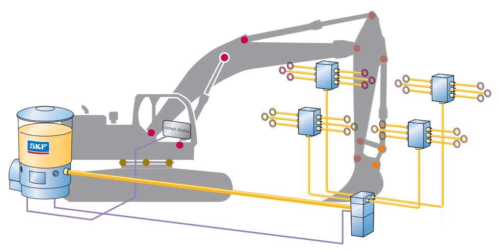 Централизованные системы смазки SKF непрерывно снабжают все подшипники смазкой во время работы машины и при движении подшипников. Эта технология значительно увеличивает срок службы деталей машин и, тем самым, строительной техники. Использование централизованной системы смазки SKF также значительно сокращает усилия, необходимые для технического обслуживания и ремонта, а снижение расхода смазочного материала до 40% помогает централизованным системам смазки SKF выделяться как экономически, так и экологически.