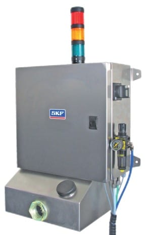 Целью систем сухой смазки SKF является автоматическая и точная подача нужного количества в нужную точку трения (поверхность цепи или направляющие) от центрального блока, который может подавать до 200 точек смазки в соответствии с производственным процессом.