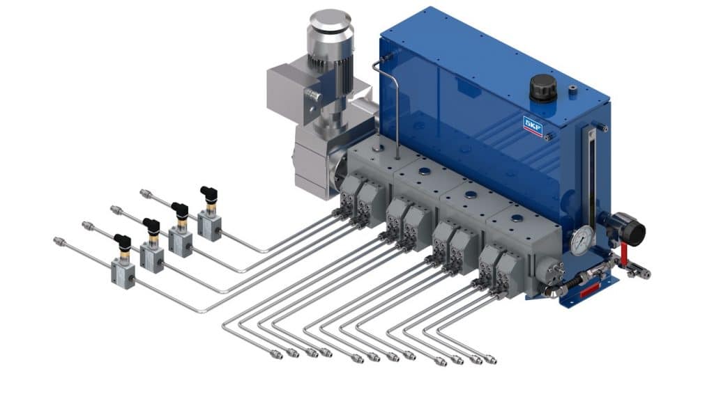Мощные насосные станции, высокое давление в трубопроводах и отсутствие дозаторов позволяет надежно подавать смазочный материал в большом объеме к удаленным, отдельно расположенным точкам смазывания. Многомагистральные системы смазывания способны обслуживать точки смазки требующие постоянной подачи смазочного вещества.